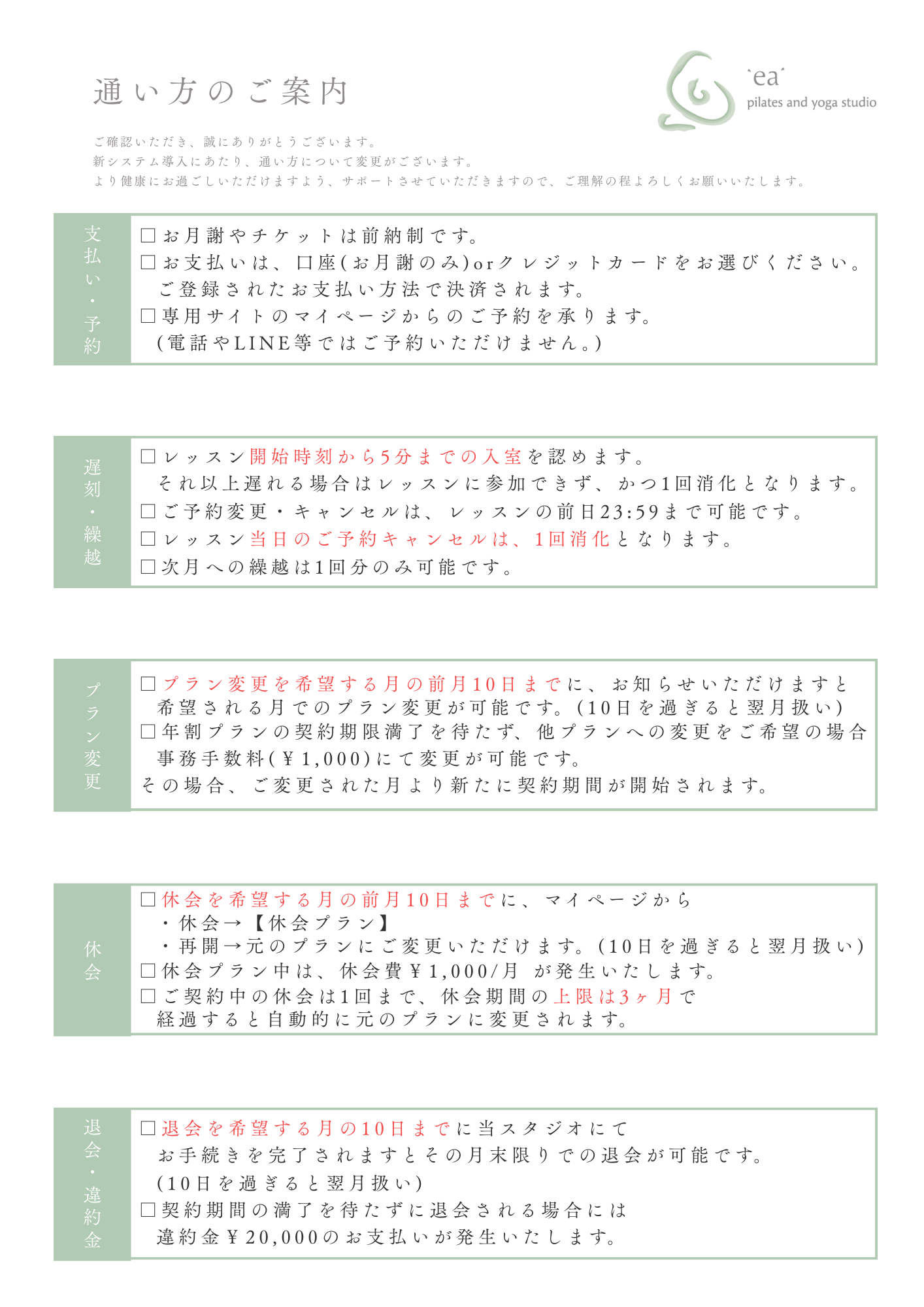 みなさまにご満足いただけるよう、インストラクターがよりレッスンに集中するために、ご理解のほど、どうぞよろしくお願いいたします。